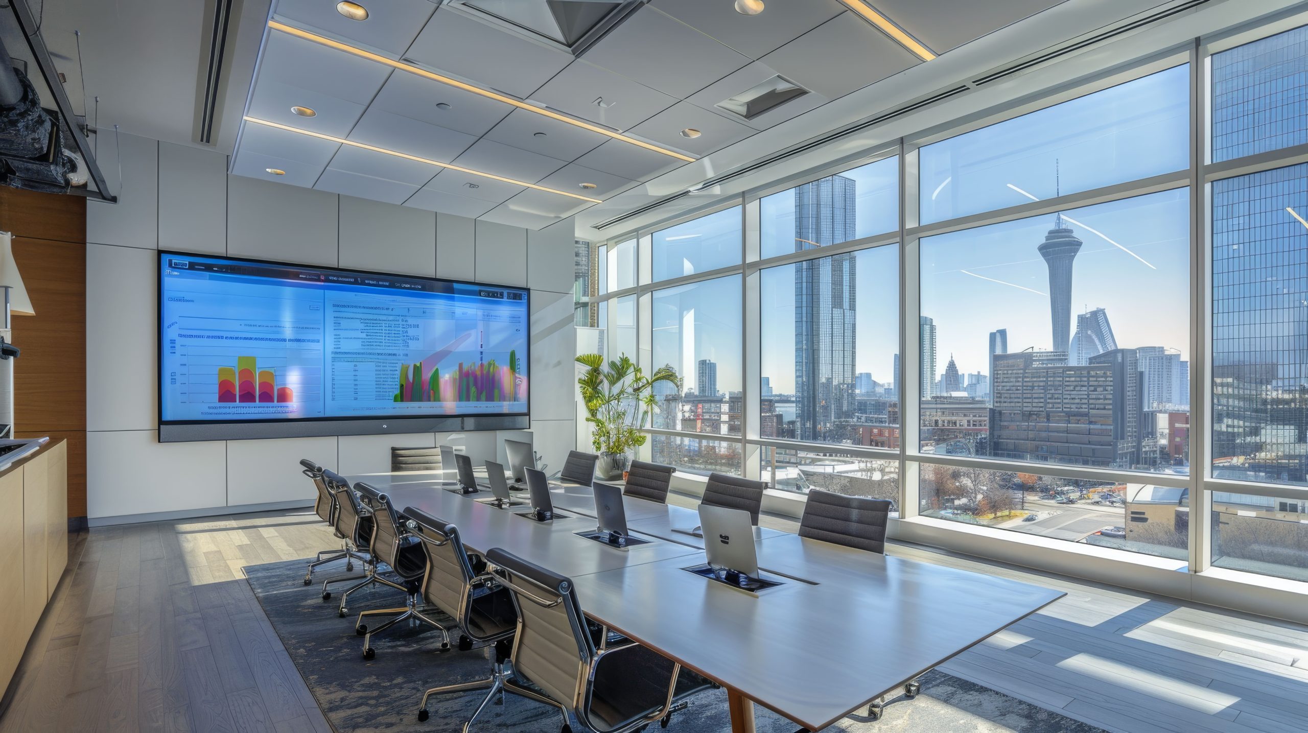 Boardroomพื้นที่จำกัด ต้องขยายห้องเพิ่มใช้ AV Control + Video Wall → รองรับการประชุมใหญ่โดยไม่ต้องสร้างห้องใหม่